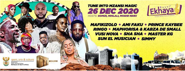 Buyel ‘Ekhaya is a popular music festival in the Eastern Cape that due to COVID, hosted a televised virtual festival with attending audiences’ of about 400 000 people. Despite tackling the challenge of the conversion from a life performance to a televised performance, the festival received many new viewers and followers, and is promising both virtual and live content in the future.